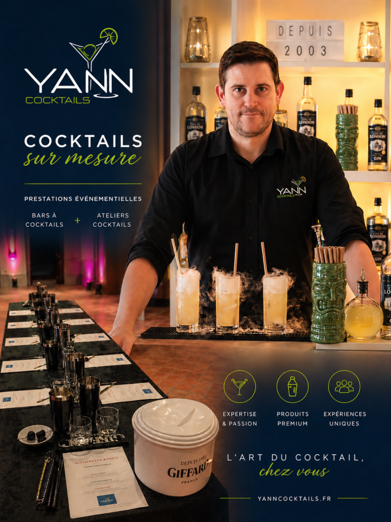 Yann Cocktails crée une expérience de bar élégante, conviviale et clé en main pour vos soirées d’entreprise, mariages, inaugurations, spectacles et événements privés.