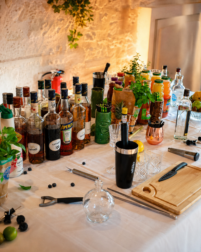 Guidés par Yann, vos invités découvrent les gestes du cocktail, les équilibres de saveurs, les techniques de préparation et quelques astuces de barman. L’atelier peut être pensé comme un moment de cohésion, une animation de soirée, une activité d’entreprise ou une expérience privée autour du goût et du partage.